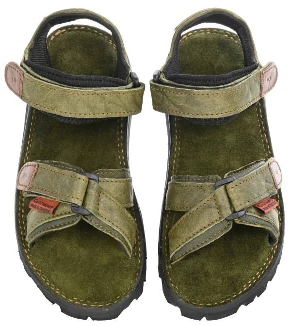 The Courteney Adventure in olive Buffalo leather is a safari sandal crafted for resilience, comfort, and all-day wear in tough terrain. The Courteney Adventure is a unisex style.