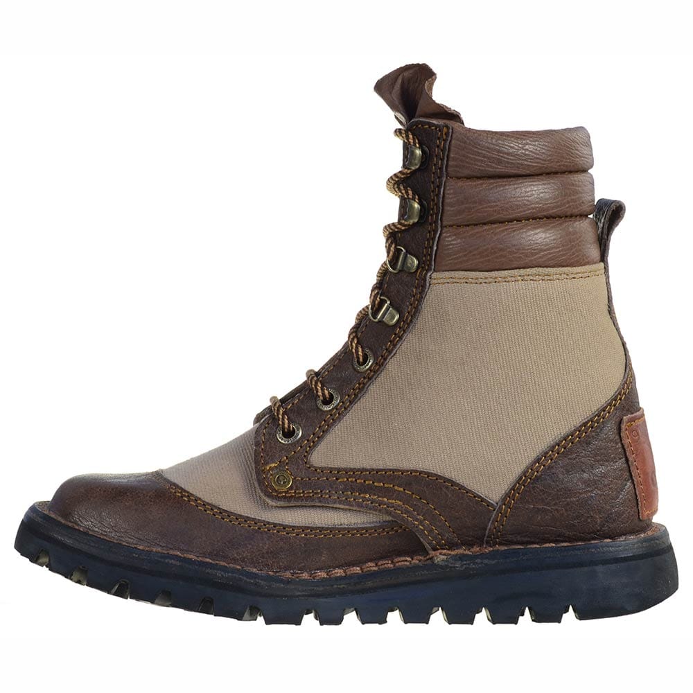 The Courteney Jameson is a calf-height boot adapted from the iconic Selous. Made from dark brown full-grain Buffalo leather with breathable canvas panels, it offers strength without excess weight – ideal for warm climates and long days on foot.