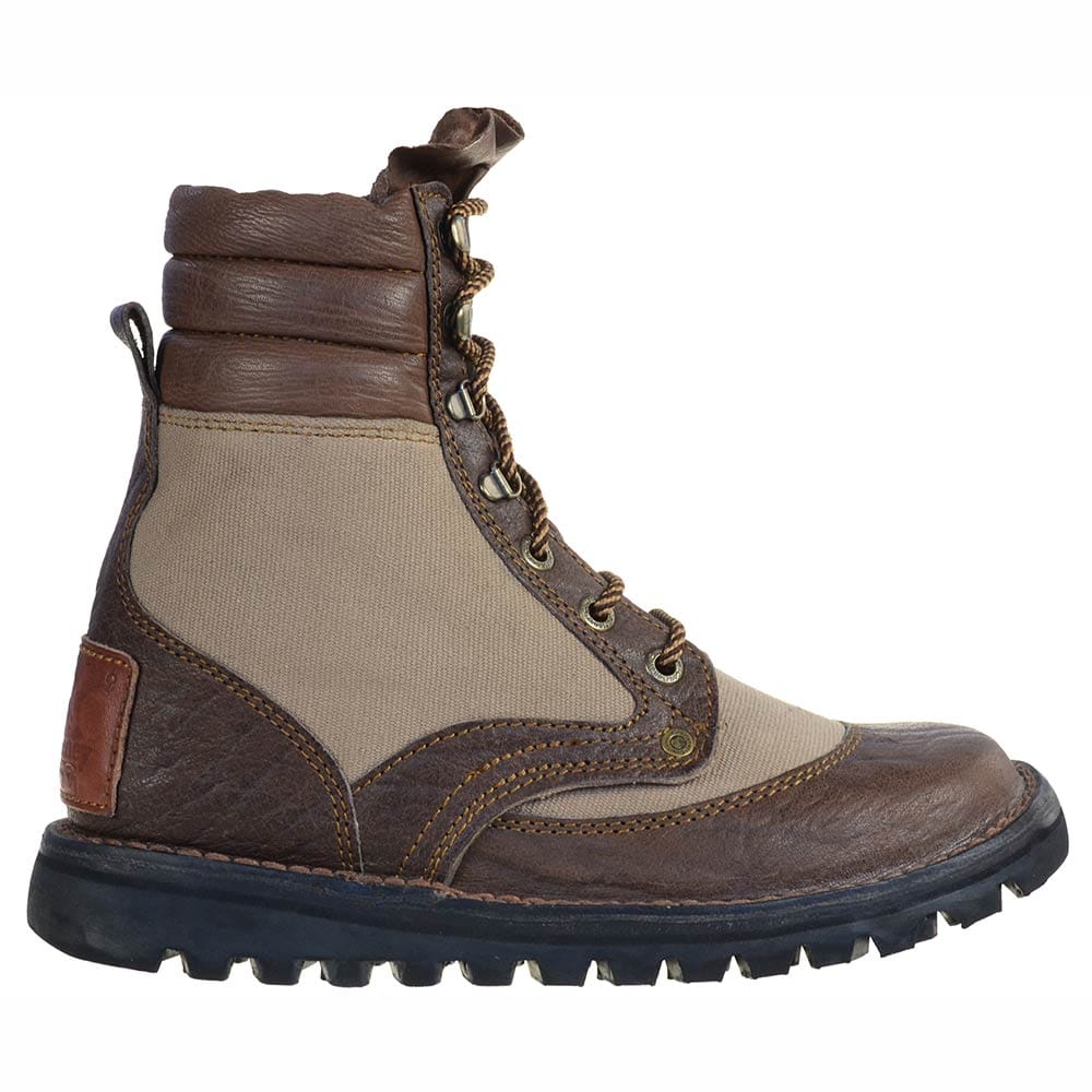 Available in dark brown Buffalo leather and canvas.