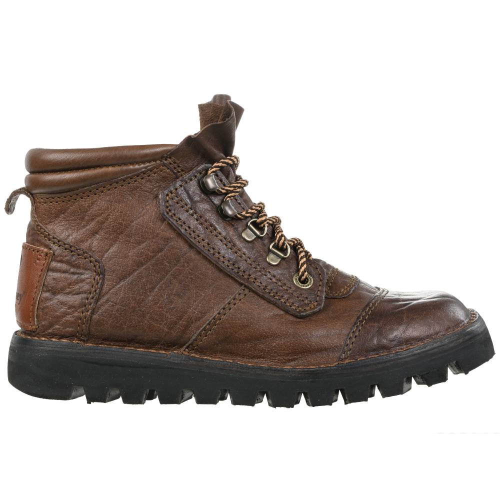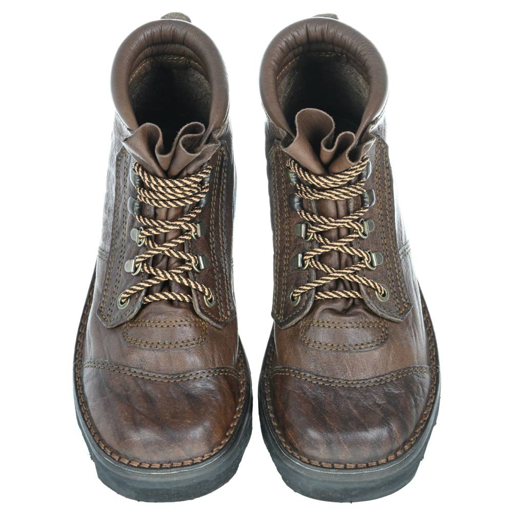 Made from full-grain dark brown Buffalo leather with a soft Impala collar and tongue, it reduces noise and helps shield against dust, grit and insects. Fitted with antique brass speed lacing and a tyre tread sole as standard; ripple sole available on request.